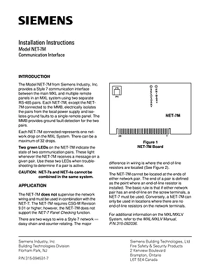 Installation Manual for the Siemens NET-7M. Document No: 315-094531-7. Model NET-7M. Physical installation guide, backbox dimensions, and cabling specifications.