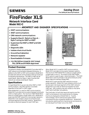 Datasheet for the Siemens NIC-C, published in 2010. Document No: 6338, Rev: 2. Model NIC-C. Product features, environmental operating limits, and compatibility data.