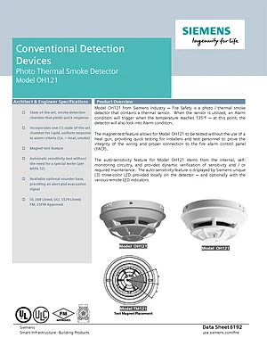 Datasheet for the Siemens OH121, published in 2019. Document No: 6192, Rev: 3. Model OH121. Product features, environmental operating limits, and compatibility data.