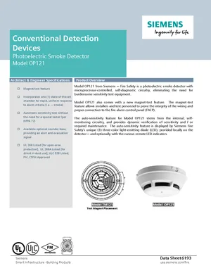 Datasheet for the Siemens OP121, published in 2019. Document No: 6193, Rev: 3. 19 models including OP121, OH121, HI121 and 16 additional variants. Product features, environmental operating limits, and compatibility data.