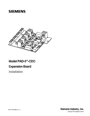 Installation Manual for the Siemens PAD-5-CDC, published in 2018. Document No: A6V101030366, Rev: b. Model PAD-5-CDC. Physical installation guide, backbox dimensions, and cabling specifications.