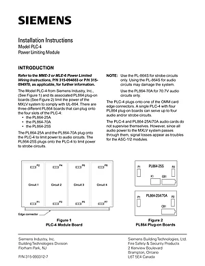 Installation Manual for the Siemens PLC-4. Document No: 315-093312-7. Model PLC-4. Mounting instructions, wiring diagrams, and system power-up procedures.