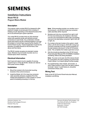 Installation Manual for the Siemens PM-32. Document No: 315-024055-5. Model PM-32. Hardware installation, terminal connections, and environmental requirements.