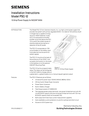 Installation Manual for the Siemens PSC-12 for NCCNT WAN. Document No: 315-099321-7. Model PSC-12. Physical installation guide, backbox dimensions, and cabling specifications.