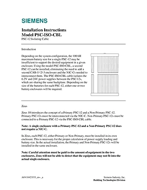 Installation Manual for the Siemens PSC-ISO-CBL. Document No: A6V10423333, Rev: a. Model PSC-ISO-CBL. Hardware installation, terminal connections, and environmental requirements.