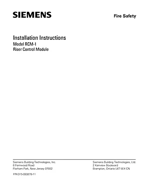 Installation Manual for the Siemens RCM-1. Document No: 555-190967, Rev: 11. Model RCM-1. Mounting instructions, wiring diagrams, and system power-up procedures.