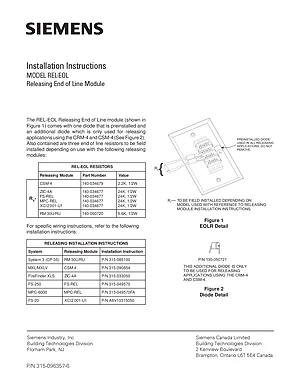 Installation Manual for the Siemens REL-EOL (Canadian). Document No: 315-096357-6, Rev: 6. Model REL-EOL. Hardware installation, terminal connections, and environmental requirements.