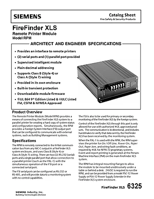 Datasheet for the Siemens RPM, published in 2010. Document No: 6325, Rev: 3. Model RPM. Engineering specifications, wiring diagrams, and mounting dimensions.