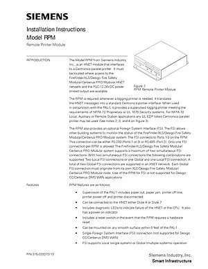 Installation Manual for the Siemens RPM. Document No: 315-033270-13, Rev: 13. Model RPM. Mounting instructions, wiring diagrams, and system power-up procedures.