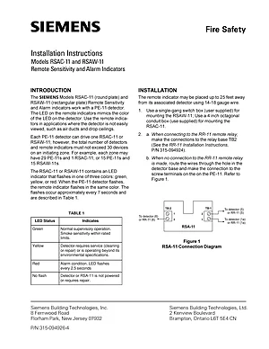 Installation Manual for the Siemens RSAC-11 and RSAW-11. Document No: 315-094926-4. Models RSAC-11 and RSAW-11. Hardware installation, terminal connections, and environmental requirements.