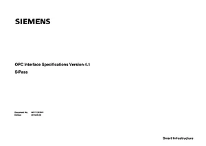 Technical Reference Manual for the Siemens SiPass OPC Interface v4.1, published in 2019. Document No: A6V11363941. Model SiPass. Advanced technical data, communication protocols, and design criteria.