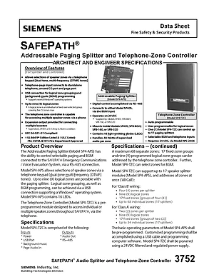Datasheet for the Siemens SP4-APS and SP4-TZC, published in 2012. Document No: 3752, Rev: 0. Models SP4-APS and SP4-TZC. Engineering specifications, wiring diagrams, and mounting dimensions.