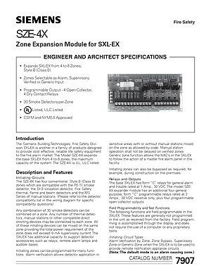 Datasheet for the Siemens SZE-4X for SXL-EX, published in 2003. Document No: 7907. Model SZE-4X. Detailed technical specifications, electrical ratings, and agency listings.
