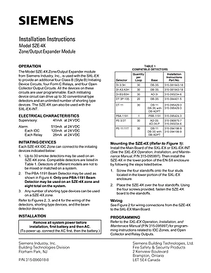 Installation Manual for the Siemens SZE-4X for SXL-EX. Document No: 315-096018-8. Model SZE-4X. Hardware installation, terminal connections, and environmental requirements.