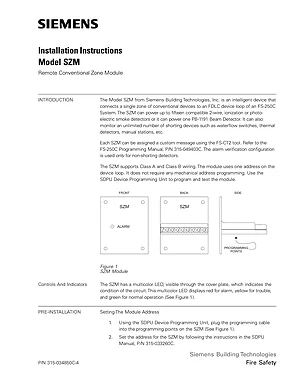 Installation Manual for the Siemens SZM. Document No: 140-820188), Rev: 4. Model SZM. Mounting instructions, wiring diagrams, and system power-up procedures.