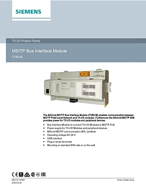 Datasheet for the Siemens TXB3.M, published in 2020. Document No: A6V101107897. Model TXB3.M. Engineering specifications, wiring diagrams, and mounting dimensions.