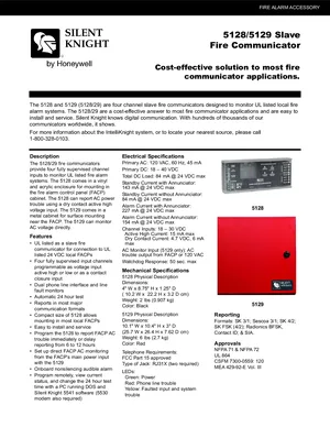 Datasheet for the Silent Knight 5128 and 5129, published in 2010. Document No: 350780, Rev: C. 5 models including 5128, 5129, 5230 and 2 additional variants. Engineering specifications, wiring diagrams, and mounting dimensions.