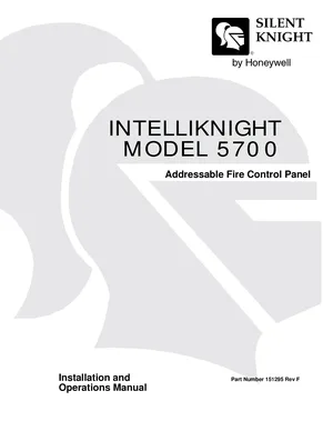 Installation, Operations, and Programming Manual for the Silent Knight 5700, published in 2007. Document No: 151295, Rev: F. 54 models including 5700, 5860, 5824 and 51 additional variants. Mounting and wiring instructions, user operating guides, and system software setup.