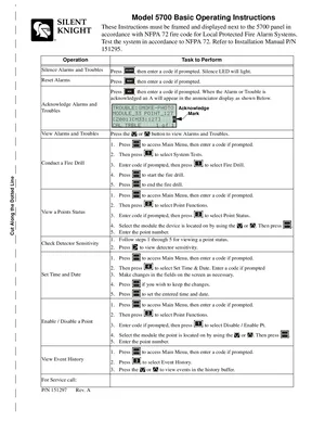 Operating Instructions for the Silent Knight 5700. Document No: 151297, Rev: A. Model 5700. Hardware installation, alarm/fault management, and advanced system configuration.