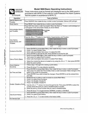 Operating Instructions for the Silent Knight 5808. Document No: 151273-L8, Rev: C. Model 5808. Mounting and wiring instructions, user operating guides, and system software setup.