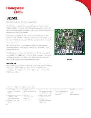 Datasheet for the Silent Knight 5815XL, published in 2018. Document No: 350098, Rev: J. 7 models including 5815XL, 5820XL, 5820XL-EVS and 4 additional variants. Engineering specifications, wiring diagrams, and mounting dimensions.