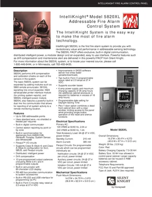 Datasheet for the Silent Knight 5820XL, published in 2006. Document No: 350210, Rev: E. 36 models including 5820XL, 5860, 5860R and 33 additional variants. Engineering specifications, wiring diagrams, and mounting dimensions.