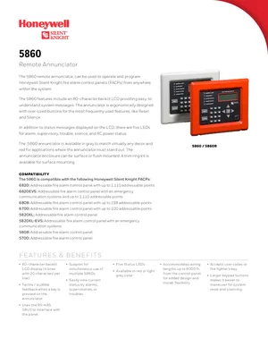 Datasheet for the Silent Knight 5860 and 5860R, published in 2017. Document No: 350224, Rev: J. 12 models including 5860, 5860R, 6820 and 9 additional variants. Engineering specifications, wiring diagrams, and mounting dimensions.