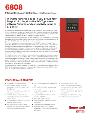 Datasheet for the Silent Knight 6808, published in 2022. Document No: 351608, Rev: C. 94 models including 6808, 5808, 6860 and 91 additional variants. Product features, environmental operating limits, and compatibility data.