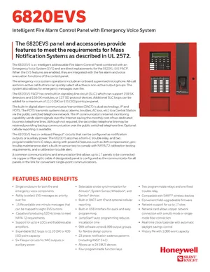 Datasheet for the Silent Knight 6820EVS, published in 2020. Document No: 351606, Rev: D. 105 models including 6820EVS, 5820XL-EVS, EVS-50W and 102 additional variants. Detailed technical specifications, electrical ratings, and agency listings.