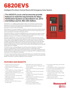 Datasheet for the Silent Knight 6820EVS, published in 2022. Document No: 351606, Rev: E. 108 models including 6820EVS, 5820XL-EVS, EVS-50W and 105 additional variants. Detailed technical specifications, electrical ratings, and agency listings.