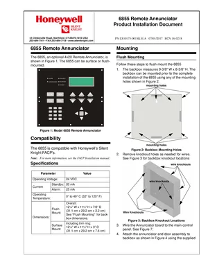 Installation Manual for the Silent Knight 6855, published in 2017. Document No: LS10175-001SK-E, Rev: A. Models 6855 and RA-100TR. Physical installation guide, backbox dimensions, and cabling specifications.