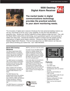 Datasheet for the Silent Knight 9500, published in 2006. Document No: 350095, Rev: Rev B. 6 models including 9500, 9512, 9815 and 3 additional variants. Product features, environmental operating limits, and compatibility data.