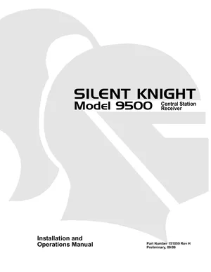 Installation, Operations, and Programming Manual for the Silent Knight 9500, published in 2006. Document No: 151059, Rev: Rev H. 8 models including 9500, 9810, 9815 and 5 additional variants. Hardware installation, alarm/fault management, and advanced system configuration.