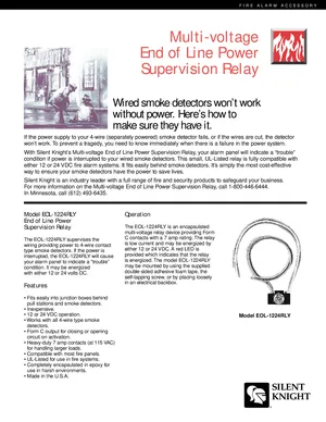 Datasheet for the Silent Knight EOL-1224RLY Relay, published in 1996. Document No: 150746, Rev: 1/96. Models EOL-1224RLY, EOL1224RLY and SK7628. Engineering specifications, wiring diagrams, and mounting dimensions.