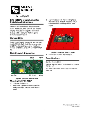 Installation Manual for the Silent Knight EVS-INT50W, published in 2015. Document No: LS10120-001SK-E, Rev: B. 24 models including EVS-INT50W, 5820XL-EVS, ECS-VCM and 21 additional variants. Mounting instructions, wiring diagrams, and system power-up procedures.