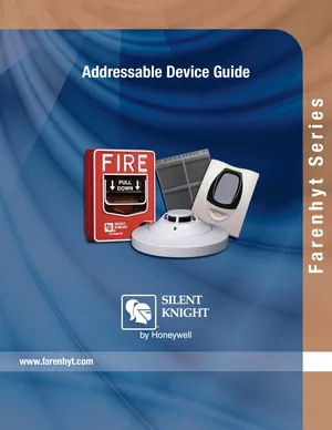 Brochure for the Silent Knight Farenhyt Series Addressable Devices, published in 2012. Document No: 350992. 56 models including IDP-Photo, IDP-Photo-T, IDP-Acclimate and 53 additional variants. System capabilities, competitive advantages, and integration options.