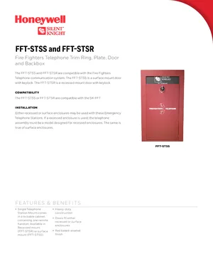 Datasheet for the Silent Knight FFT-STS Enclosures, published in 2018. Document No: 350601, Rev: B. 5 models including FFT-STSS, FFT-STSR, SK-FFT and 2 additional variants. Detailed technical specifications, electrical ratings, and agency listings.