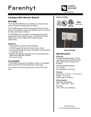 Datasheet for the Silent Knight HFS-MM, published in 2013. Document No: 350148, Rev: C. Models HFS-MM and IFP-25. Engineering specifications, wiring diagrams, and mounting dimensions.