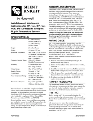 Installation Manual for the Silent Knight IDP-Heat, published in 2005. Document No: I56-2722-00R, Rev: 00R. 7 models including IDP-Heat, IDP-Heat-ROR, IDP-Heat-HT and 4 additional variants. Hardware installation, terminal connections, and environmental requirements.
