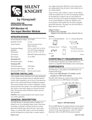 Installation Manual for the Silent Knight IDP-Monitor-10, published in 2006. Document No: I56-2731-003, Rev: 003. Models IDP-Monitor-10 and IDP-ACB. Hardware installation, terminal connections, and environmental requirements.