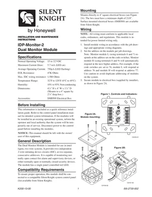 Installation Manual for the Silent Knight IDP-Monitor-2, published in 2006. Document No: I56-2730-002, Rev: 002. Models IDP-Monitor-2 and SMB500. Physical installation guide, backbox dimensions, and cabling specifications.