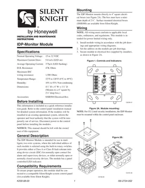 Installation Manual for the Silent Knight IDP-Monitor, published in 2006. Document No: I56-2724-002, Rev: 002. Models IDP-Monitor and SMB500. Physical installation guide, backbox dimensions, and cabling specifications.