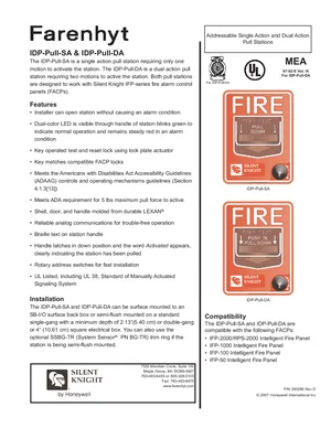Datasheet for the Silent Knight IDP-Pull Pull Stations, published in 2007. Document No: 350286, Rev: D. Models IDP-Pull-SA and IDP-Pull-DA. Detailed technical specifications, electrical ratings, and agency listings.