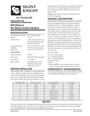 Installation Manual for the Silent Knight IDP-Relay-6, published in 2006. Document No: I56-2732-003, Rev: 003. Models IDP-Relay-6 and IDP-ACB. Mounting instructions, wiring diagrams, and system power-up procedures.