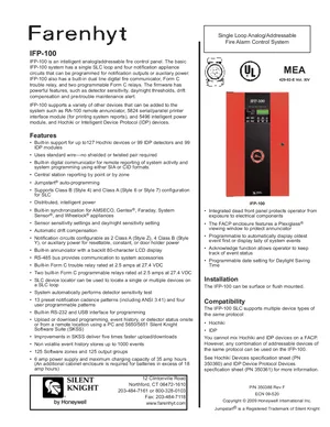 Datasheet for the Silent Knight IFP-100, published in 2009. Document No: 350388, Rev: F. 17 models including IFP-100, RA-100, 5824 and 14 additional variants. Engineering specifications, wiring diagrams, and mounting dimensions.