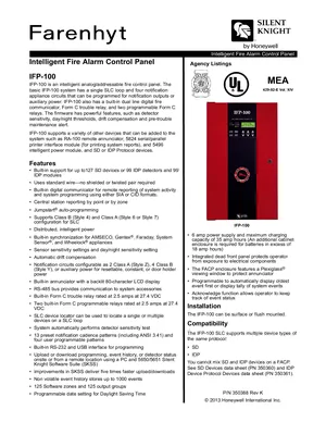 Datasheet for the Silent Knight IFP-100, published in 2013. Document No: 350388, Rev: K. 16 models including IFP-100, RA-100, RA-1000R and 13 additional variants. Detailed technical specifications, electrical ratings, and agency listings.