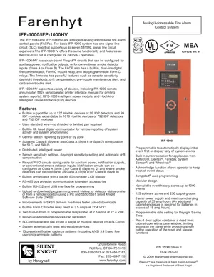 Datasheet for the Silent Knight IFP-1000, published in 2009. Document No: 350093, Rev: J. 18 models including IFP-1000, IFP-1000HV, 5815XL and 15 additional variants. Detailed technical specifications, electrical ratings, and agency listings.