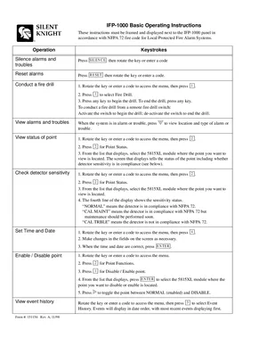 Operations Manual for the Silent Knight IFP-1000, published in 1998. Document No: 151156, Rev: A. Models IFP-1000 and 5815XL. Operator instructions, emergency procedures, and system testing guides.