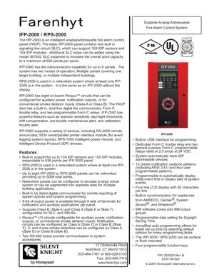 Datasheet for the Silent Knight IFP-2000 Control Panels, published in 2009. Document No: 350028, Rev: B. 22 models including IFP-2000, RPS-2000, 5815XL and 19 additional variants. Engineering specifications, wiring diagrams, and mounting dimensions.