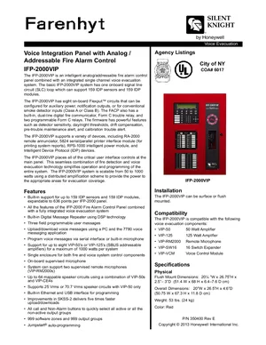Datasheet for the Silent Knight IFP-2000VIP, published in 2013. Document No: 350400, Rev: E. 24 models including IFP-2000VIP, IFP-2000VIPHV, VIP-50 and 21 additional variants. Detailed technical specifications, electrical ratings, and agency listings.